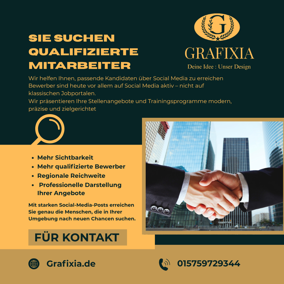 Grafixia ist auf hochwertiges Grafikdesign spezialisiert, das Marken durch klare, kreative und professionelle Visuals hervorhebt.